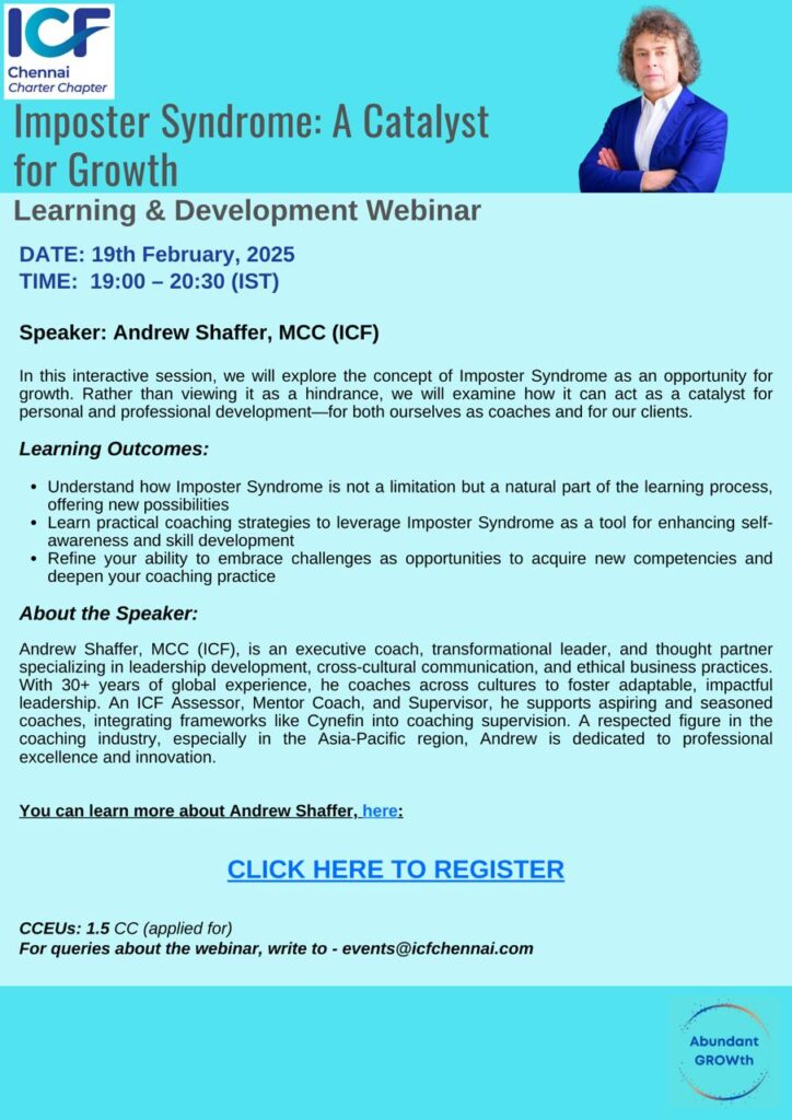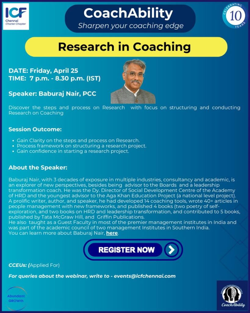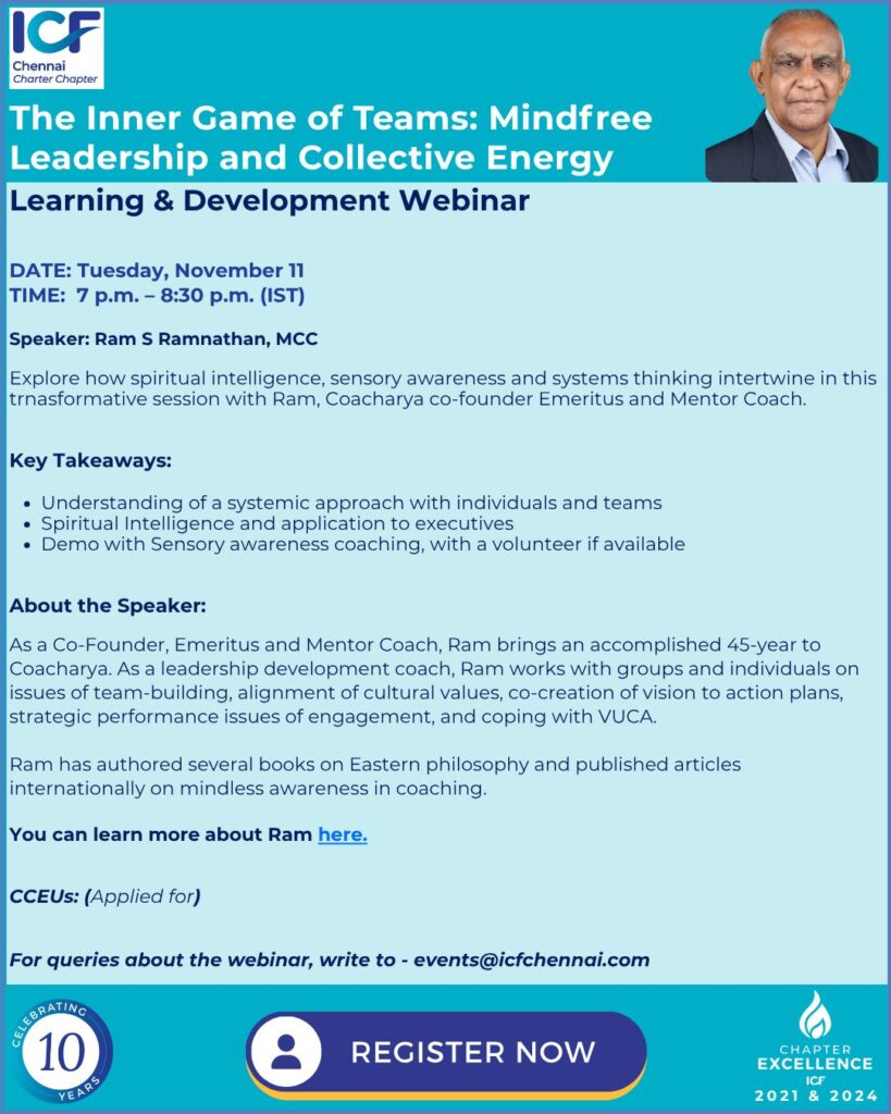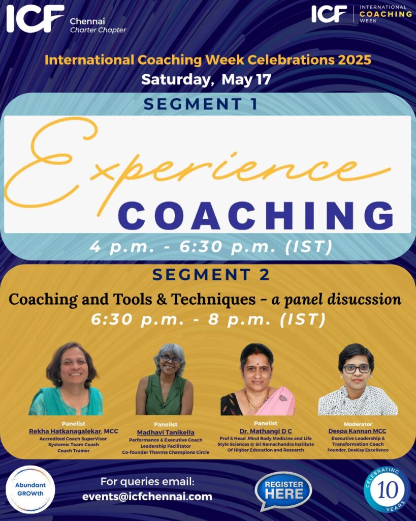 Be part of ICF Chennai and elevate your coaching journey with learning and leadership opportunities.